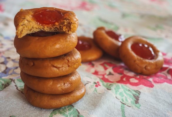 Eu usei doce de tomate para rechear estas bolachas, mas estava agora mesmo a ir para a cozinha repetir o processo e recheá-las… aleatoriamente… com chocolate derretido! Mas aí o nome seria PB (penut butter) & C (chocolate) em vez de J (jam) e estragava-me esta referência à cultura pop Americana da qual, tal como dá para perceber na receita de Mac&Cheese, não sou nada fã…