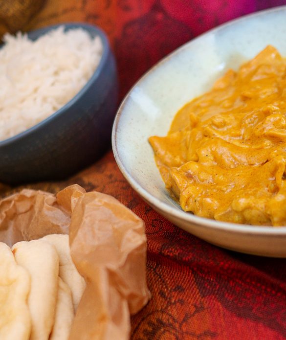 O elemento principal é a pasta de caril. Vejam a nossa receita para a pasta de caril Korma e, se não a tiverem já feito, façam-na em 2 ou 3 minutos e vamos ao que importa! Juntámos também uma receita de pão naan, que acompanha na perfeição a maior parte dos diversos caris.