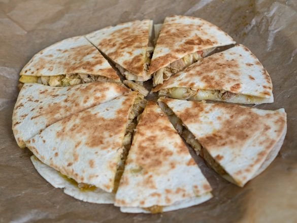 No México gosta-se muito de queijo também, ao ponto de meterem “queijo” no nome de um dos seus pratos mais emblemáticos. Gostaria de ver mais essa atitude por cá, apesar de não me estar a lembrar de nenhum nome que fique bem….queijesinha…queijchorrinho…queijarroz de pato? Tudo péssimo….queijoada à transmontana? Este nem sequer leva queijo, valha-me deus… Bom, vamos à Quesadilla, que é tão fácil que até devia dar multa eu chamar-lhe receita.