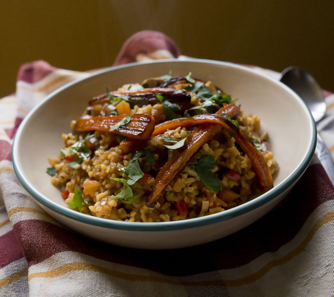 1. Nem pensem em substituir bulgur por couscous senão vou ter de me chatear convosco. O bulgur está cheio de textura e sabor, quase como se fosse o melhor arroz e massa misturados numa coisa só. O couscous é fantástico mas para outro tipo de pratos.